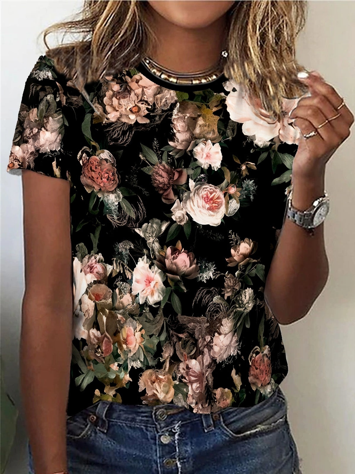 Women's Short Sleeve Round Neck Leopard T-Shirt - Perfect for comfortable spring and autumn casual wear