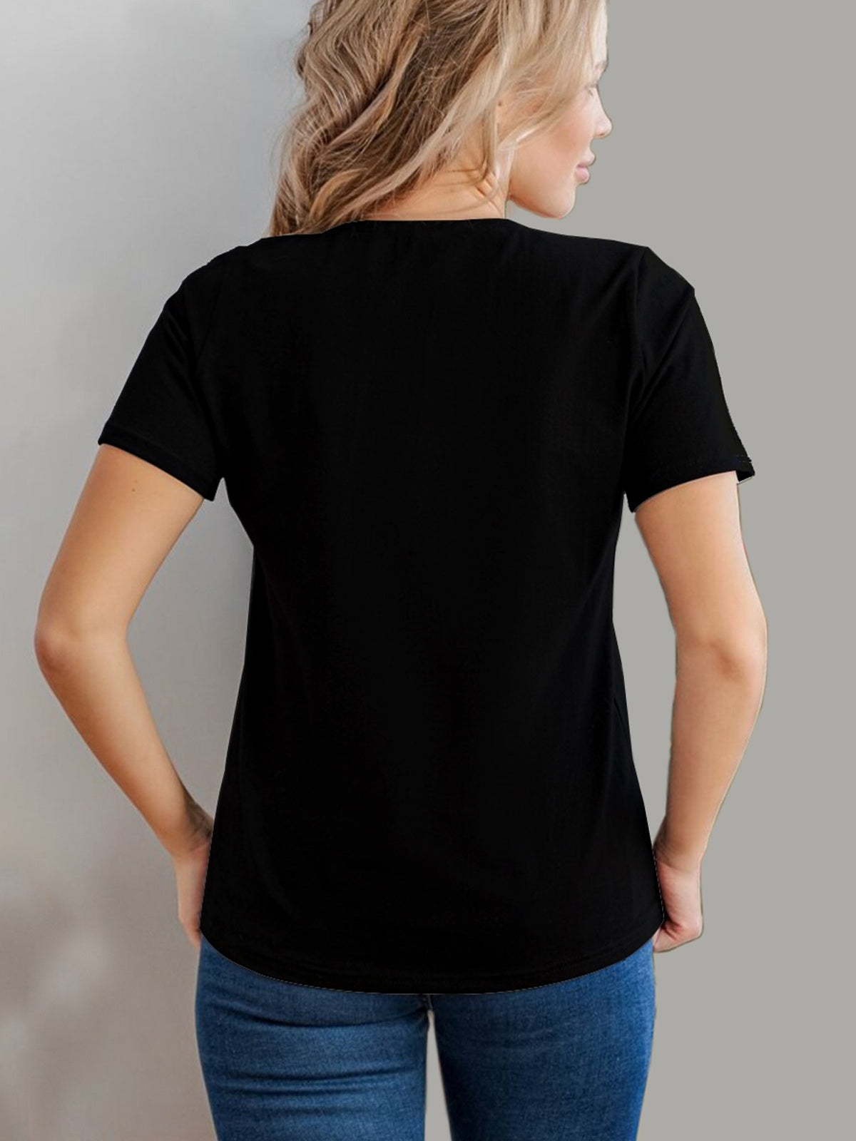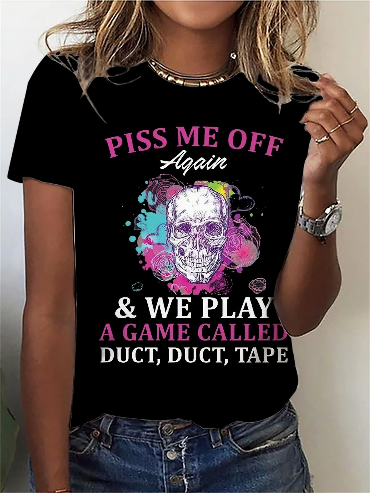 Women's T-shirt skull print short sleeve crew neck - perfect for casual wear in spring and fall