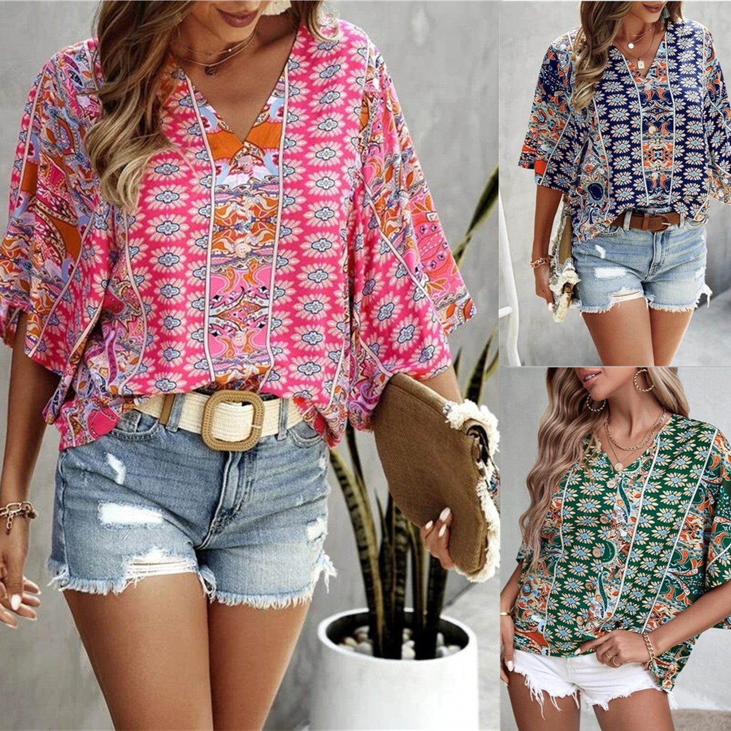 Color: pink, green, blue